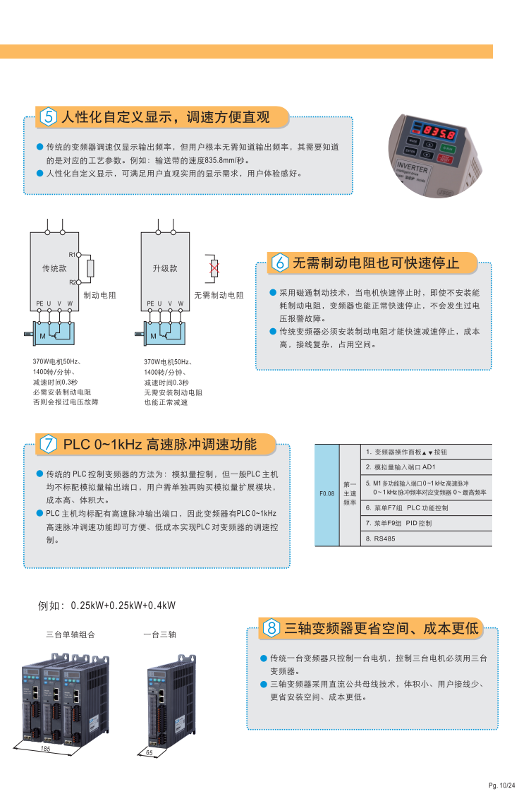 豐富功能,簡單操作,輕松設(shè)定· 0-10V模擬量輸入輸出 · 三段多段速 ·直流制動(dòng)